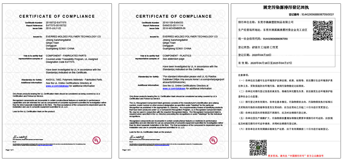 | 7 | UL94-V0原料防火 | E484533 |